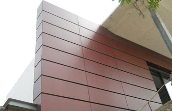 Compact Laminate (Massive laminate) is homogenous facade cladding panels, which are manufactured by penetration large amount of Kraft paper with phenol resin and coating of front and back surfaces with UV – melamine based decorative paper under multilayer presses at high temperatures (170°C) and high pressure (100 – 120 bar kg/cm2) during 60-90 minutes.
